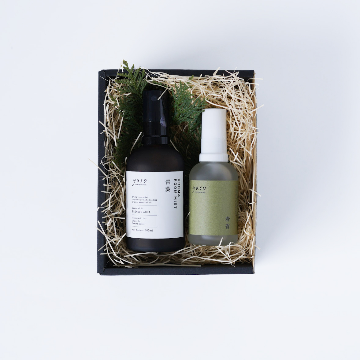 新芽のかぐわしさとほろ苦さが調和する春の香り「春香 - SHUNKA - 」と、 新緑の清々しさを思わせるyasoのシグネチャーフレグランス「青葉」。 2種類の香りによる、ルームミストセットです。