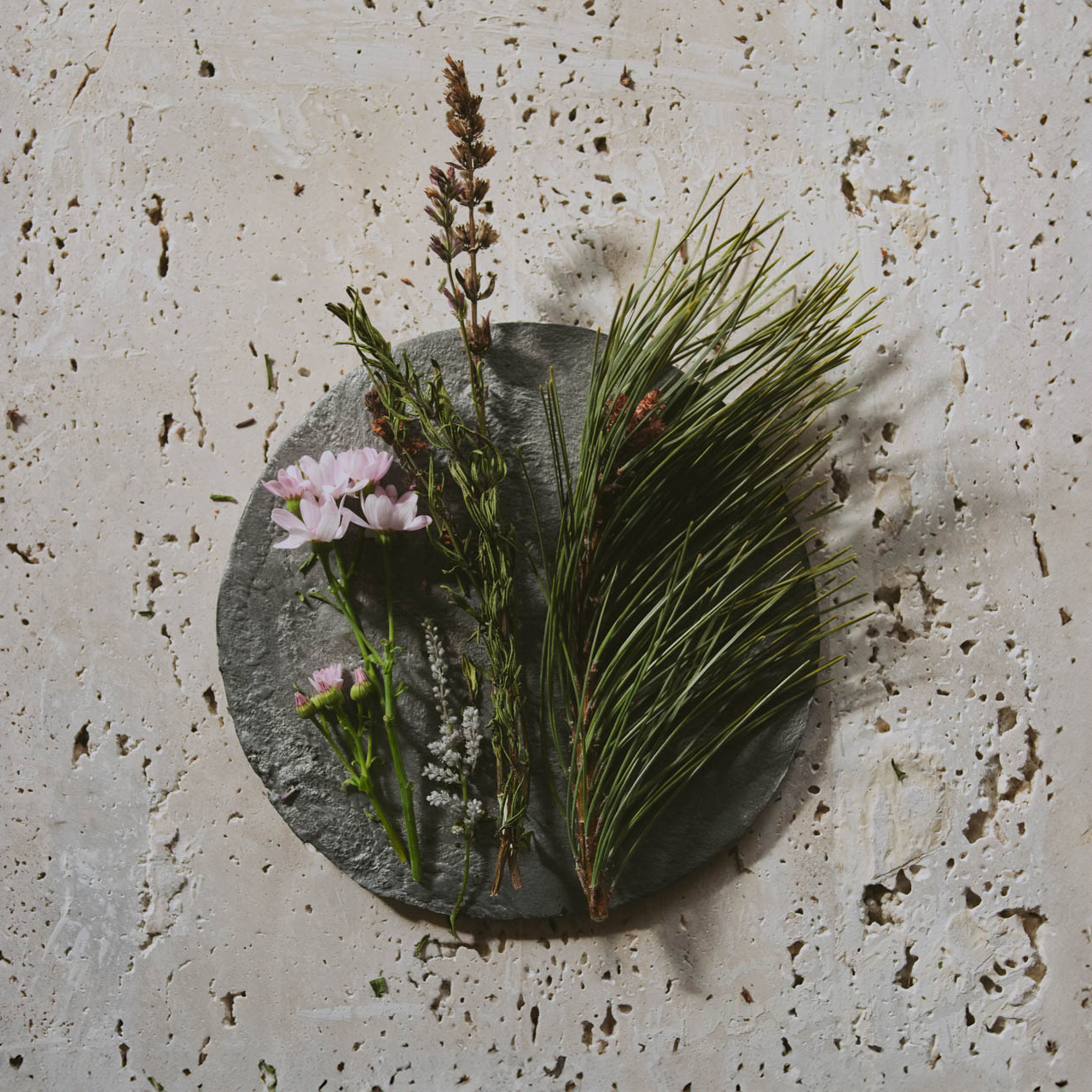 赤松の精油にハーブの華やかさをブレンドした、強く儚い野花の香り。